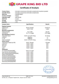 アントロステロールの原料を扱っている上場企業Grape King Bio Tech製薬会社は台湾の菌糸体培養専門のトップ企業です。台湾政府プロジェクトの賞金を獲得し、初めてバイオ製造工程の認定を取得した優秀な企業でもあります。医療品の安全性と有用性を保証する国際保健機構(WHO)の基本条件「CGMP」対応企業として、厳しい条件を厳守し高度な科学技術を結集し数々の高品質の医療品や健康食品を提供しております。